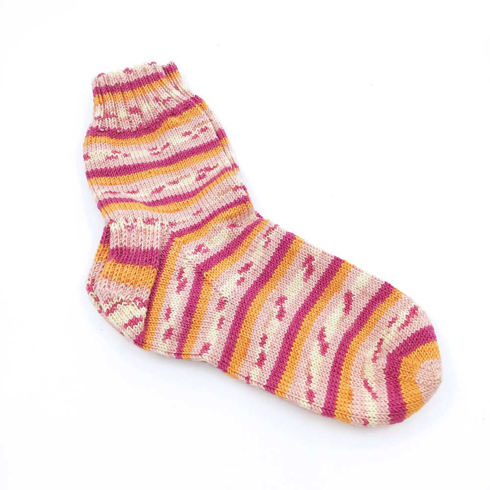 Fun, cozy hand-knit socks with a grapefruit parfait pattern by Jen Boyd Martin