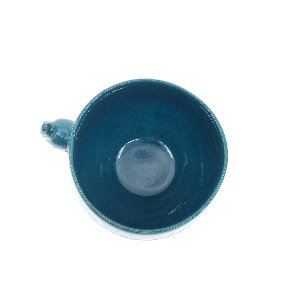 Dillow white clay with Turquoise and moonscape glazes wheel thrown 5" x 3.5"