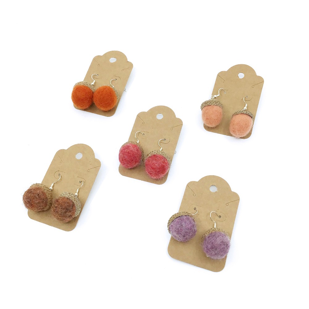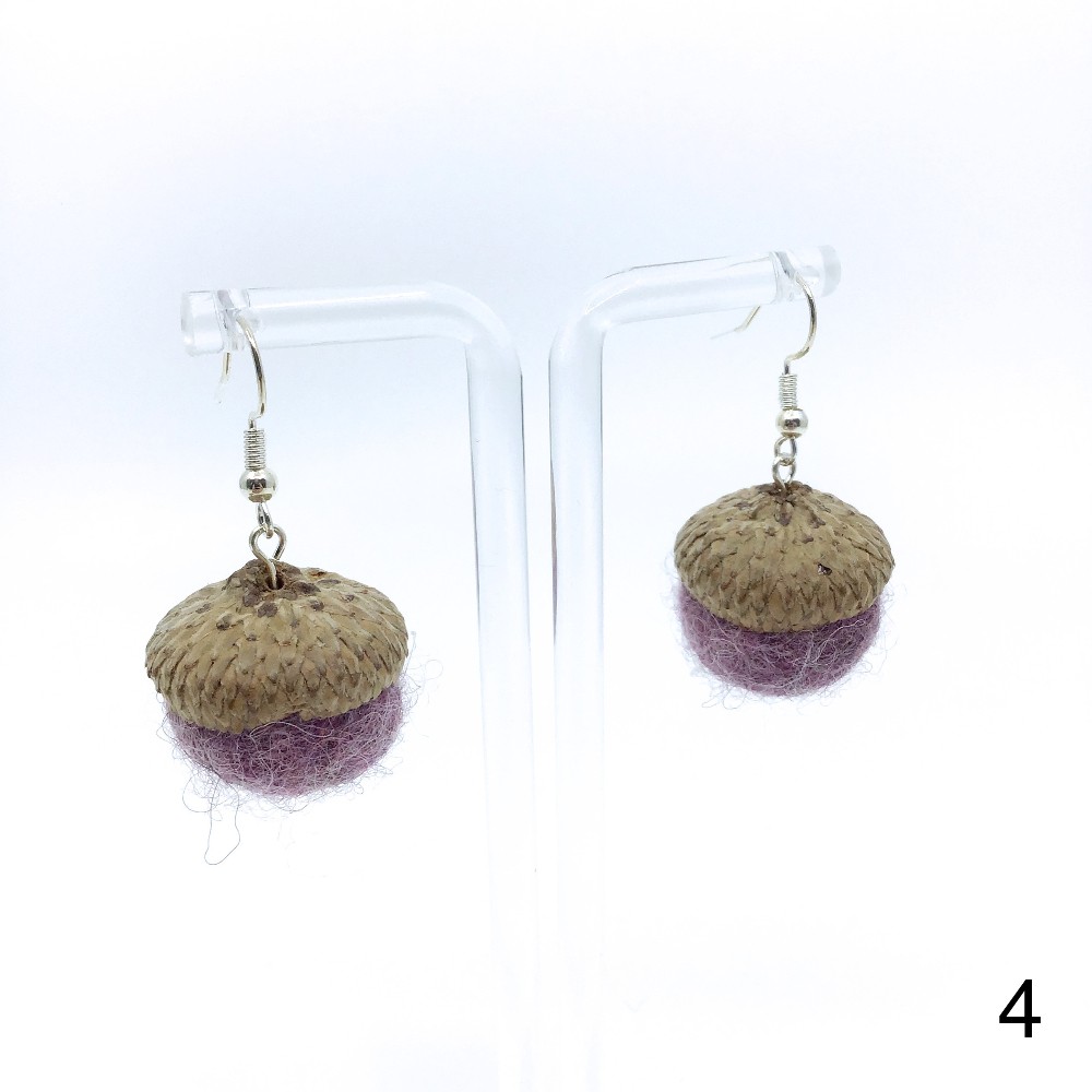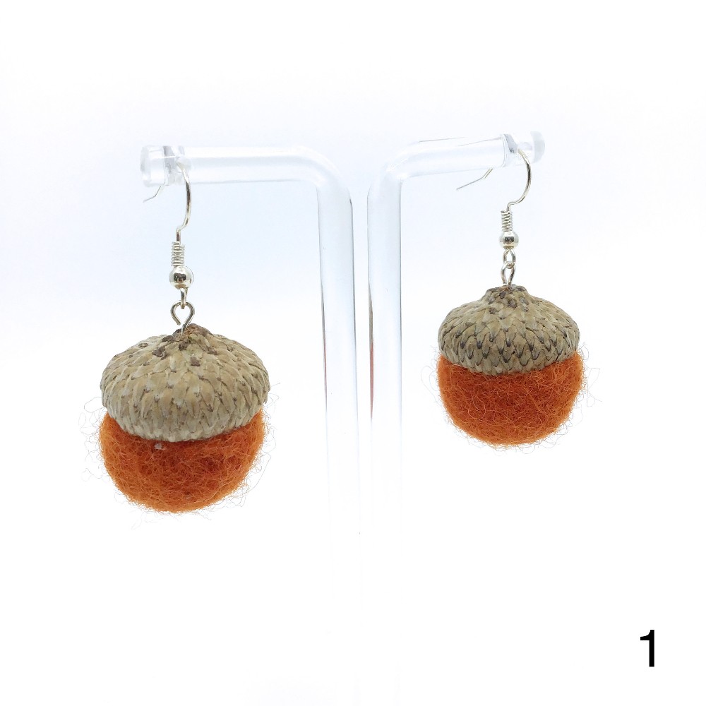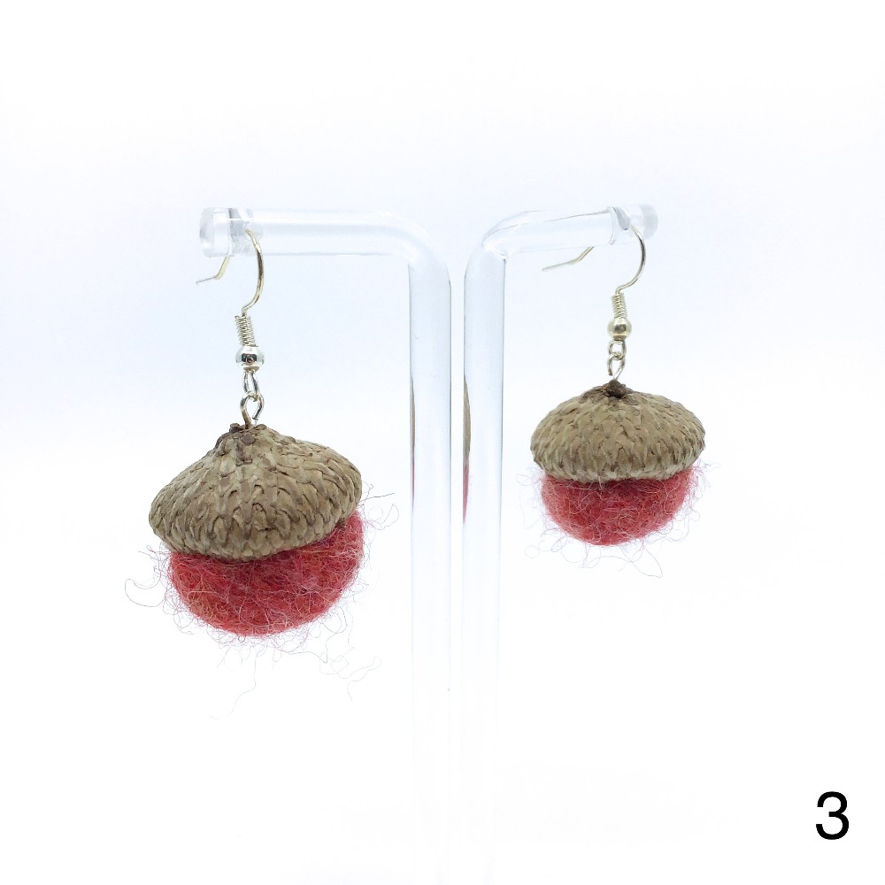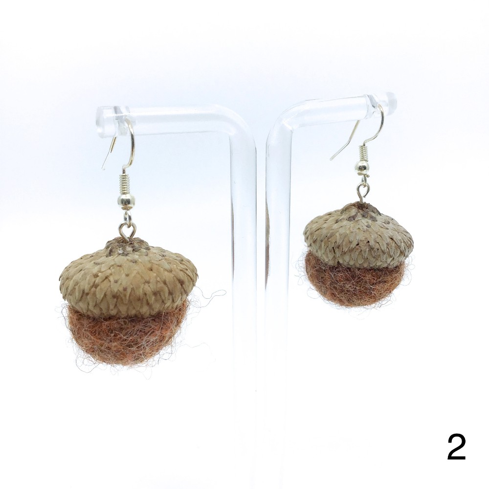 Fun, needle felted acorn earrings in a variety of autumnal colors by Suzy Gammill.
