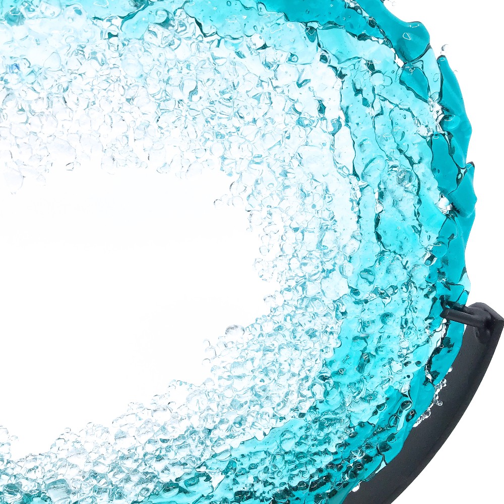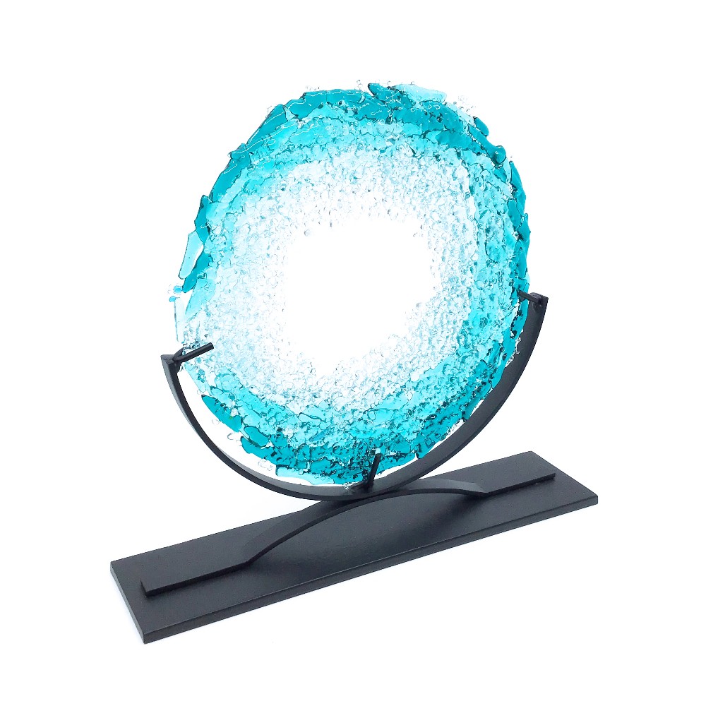 Glass sculpture in shades of blue with a custom made display stand by Jenny Dillon