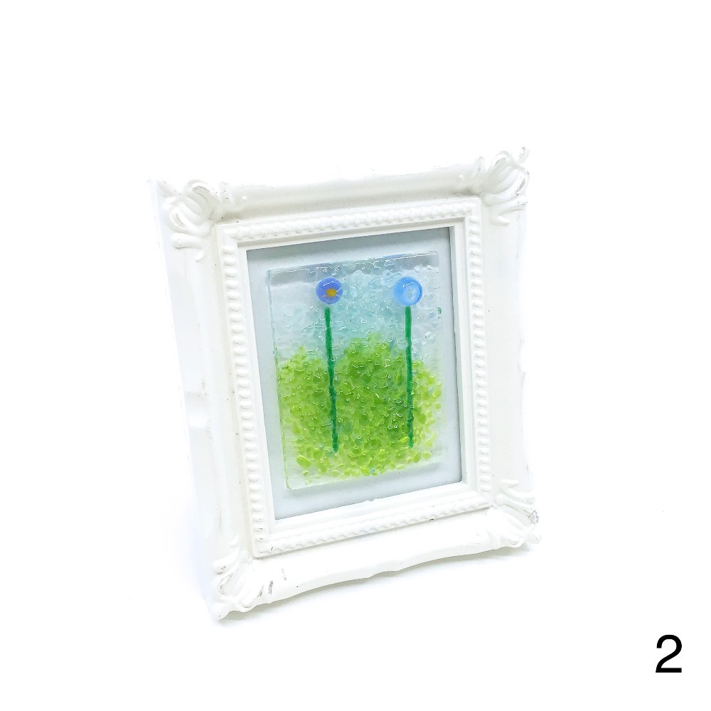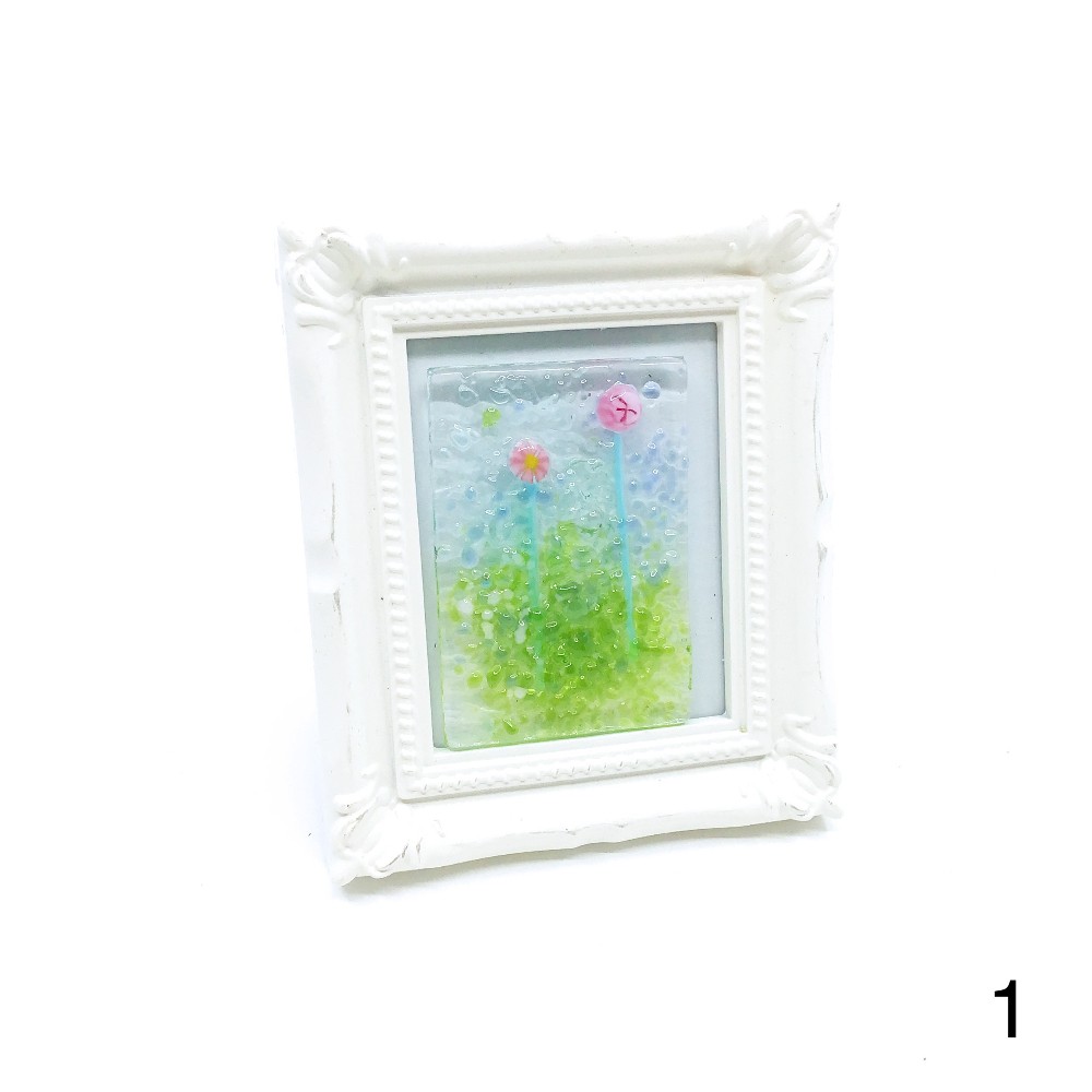 Framed glass pieces depicting florals in pastel shades by Jenny Dillon