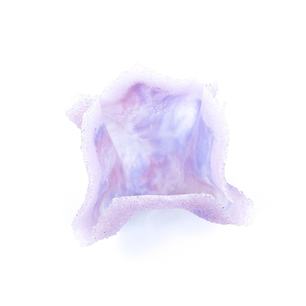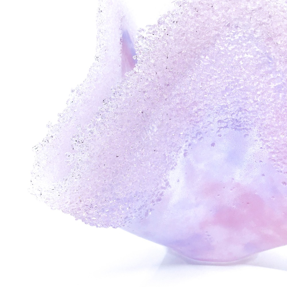 Glass vase sculpture in pink & lavender with pink glass frit edges by Jenny Dillon