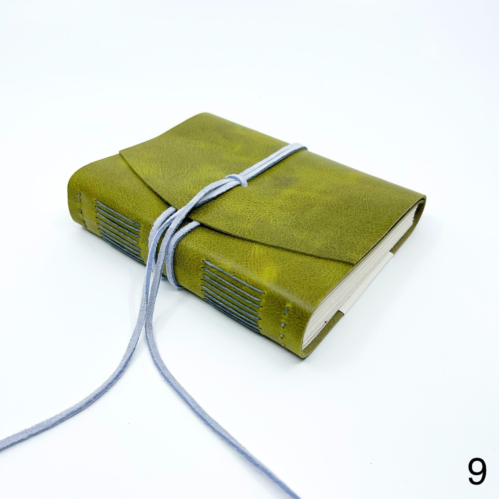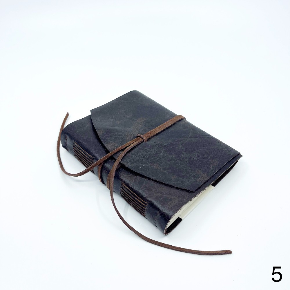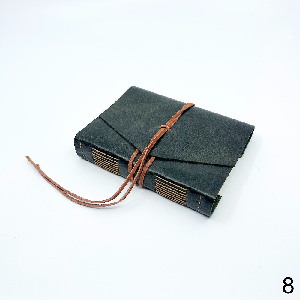 Leather field journal with lined 80lb writing paper made using the long stitch binding style by Jennifer Rose Wolken
