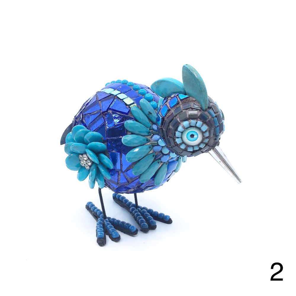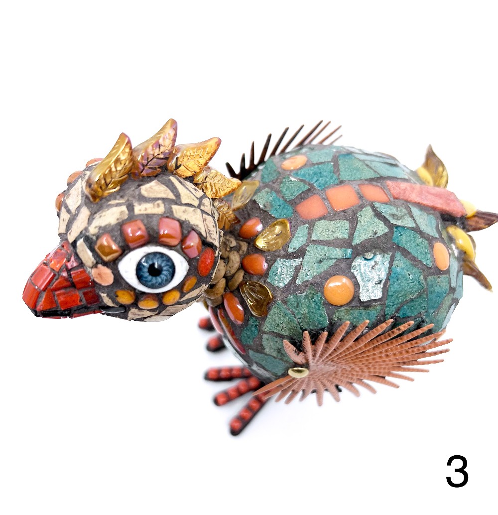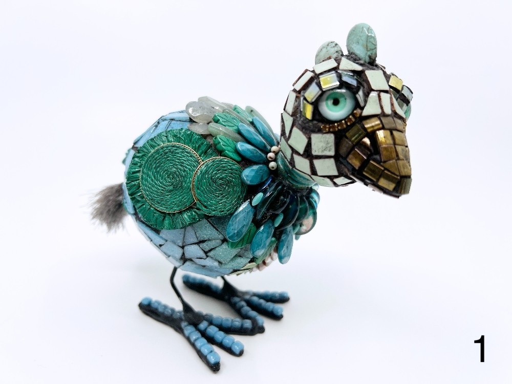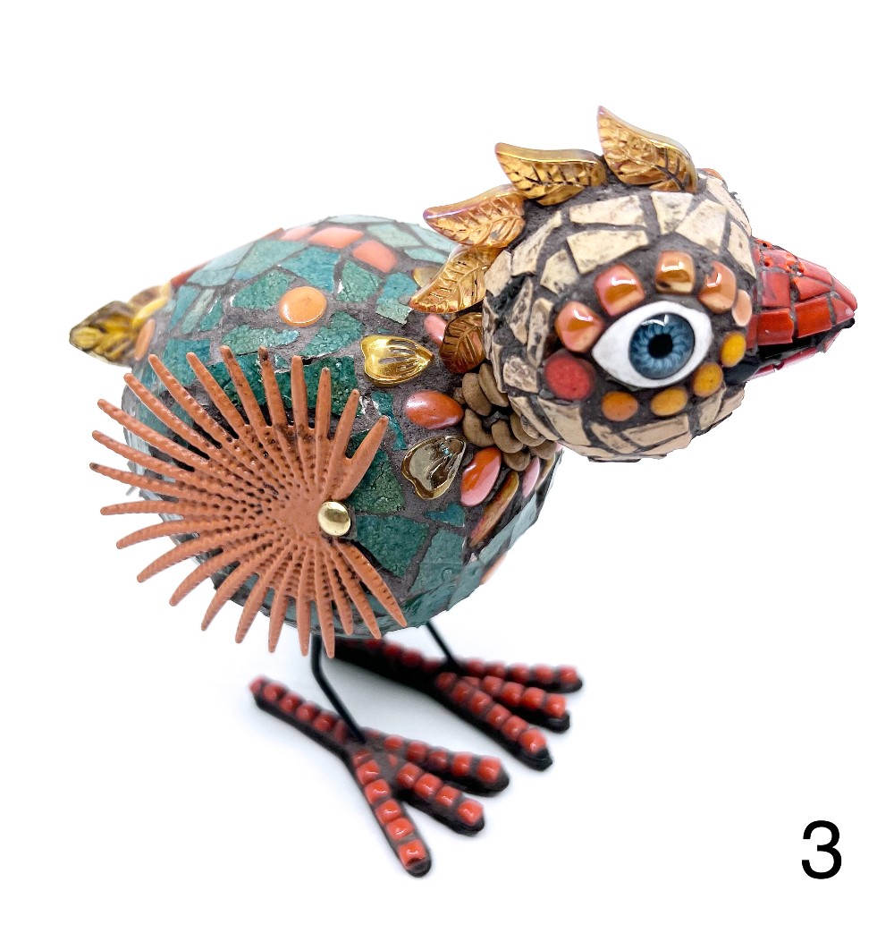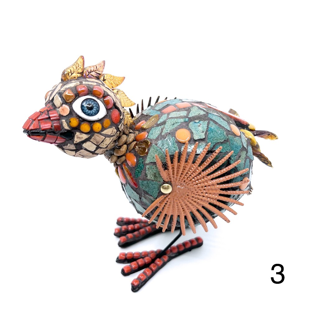 Large mosaic chickadees in a variety of colors and styles by Caryn Brown