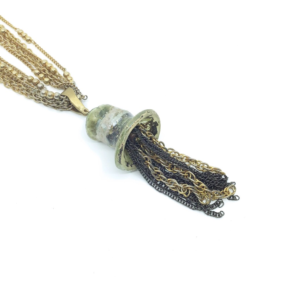 Vintage necklace in gold with an ancient Roman glass bottle pendant by Cady Carlson
