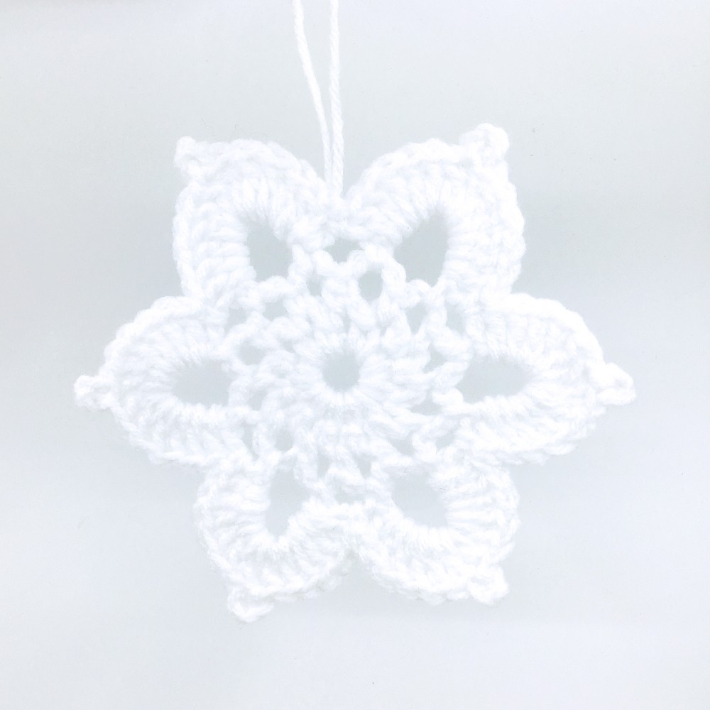 Crocheted snowflake ornaments in white by Jen Boyd Martin