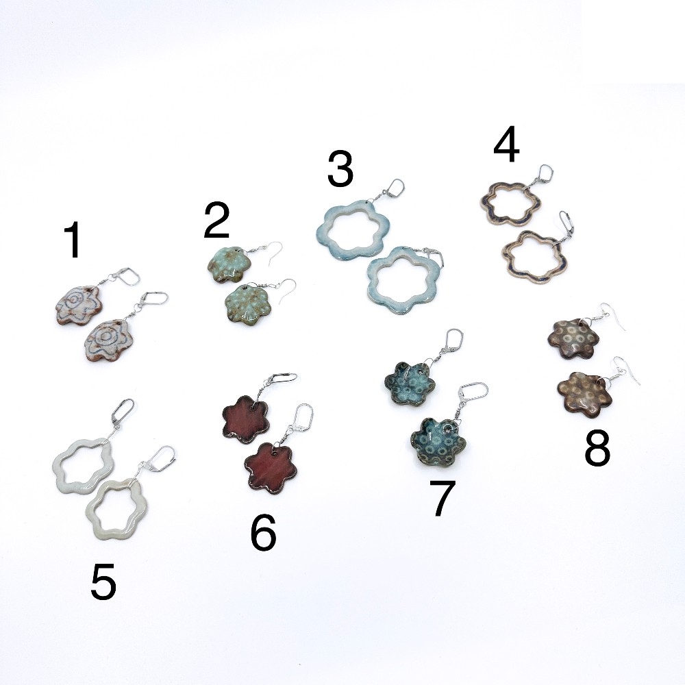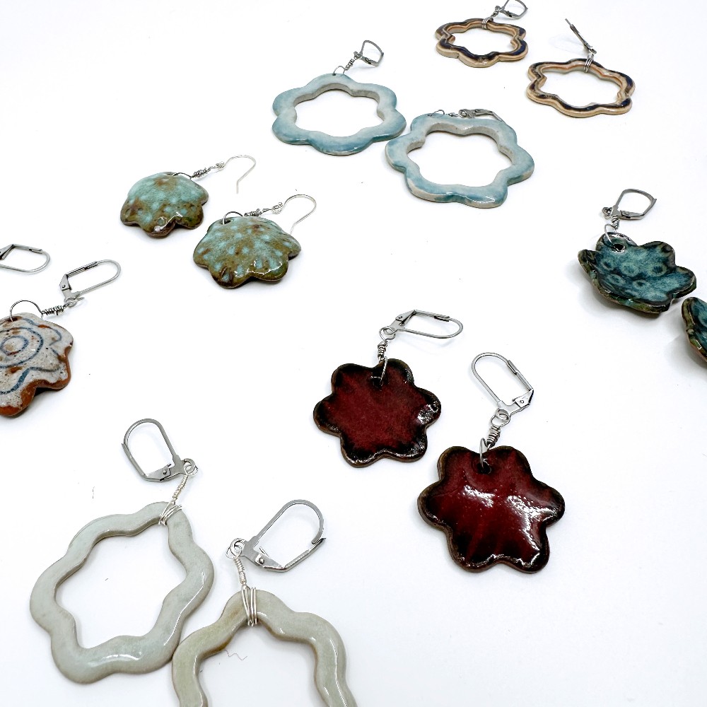 Ceramic earrings in a variety of colors and styles by Ruth Hesse.