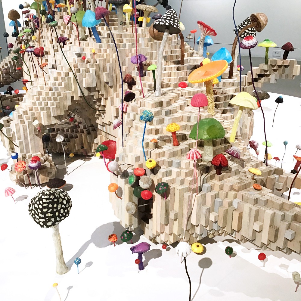 Plywood, ink, acrylic paint, cast resin; 48" x 96" x 96"